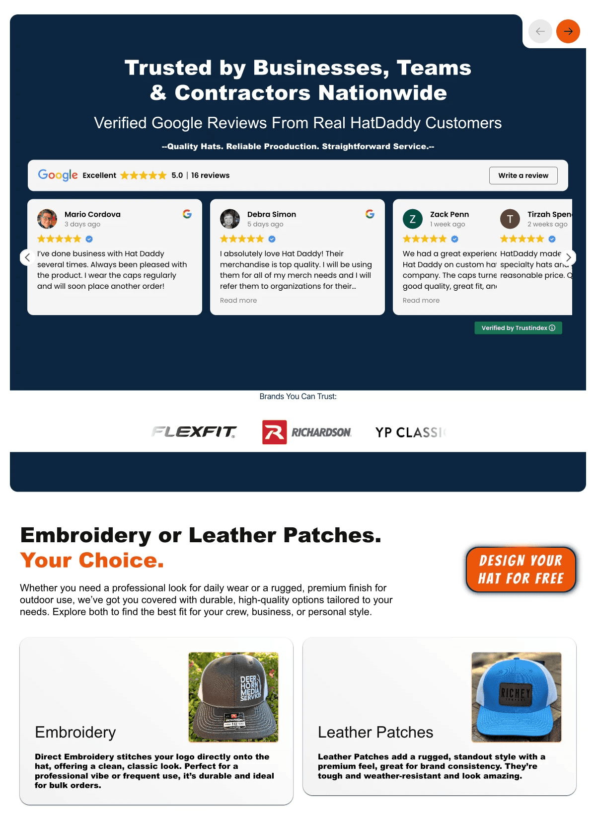 Hat Daddy isn’t about boutique branding or luxury experiences—they’re about getting hats made, fast. We made sure every word on the site reflected that. Our copy is direct, confident, and modern, just like the brand itself.
