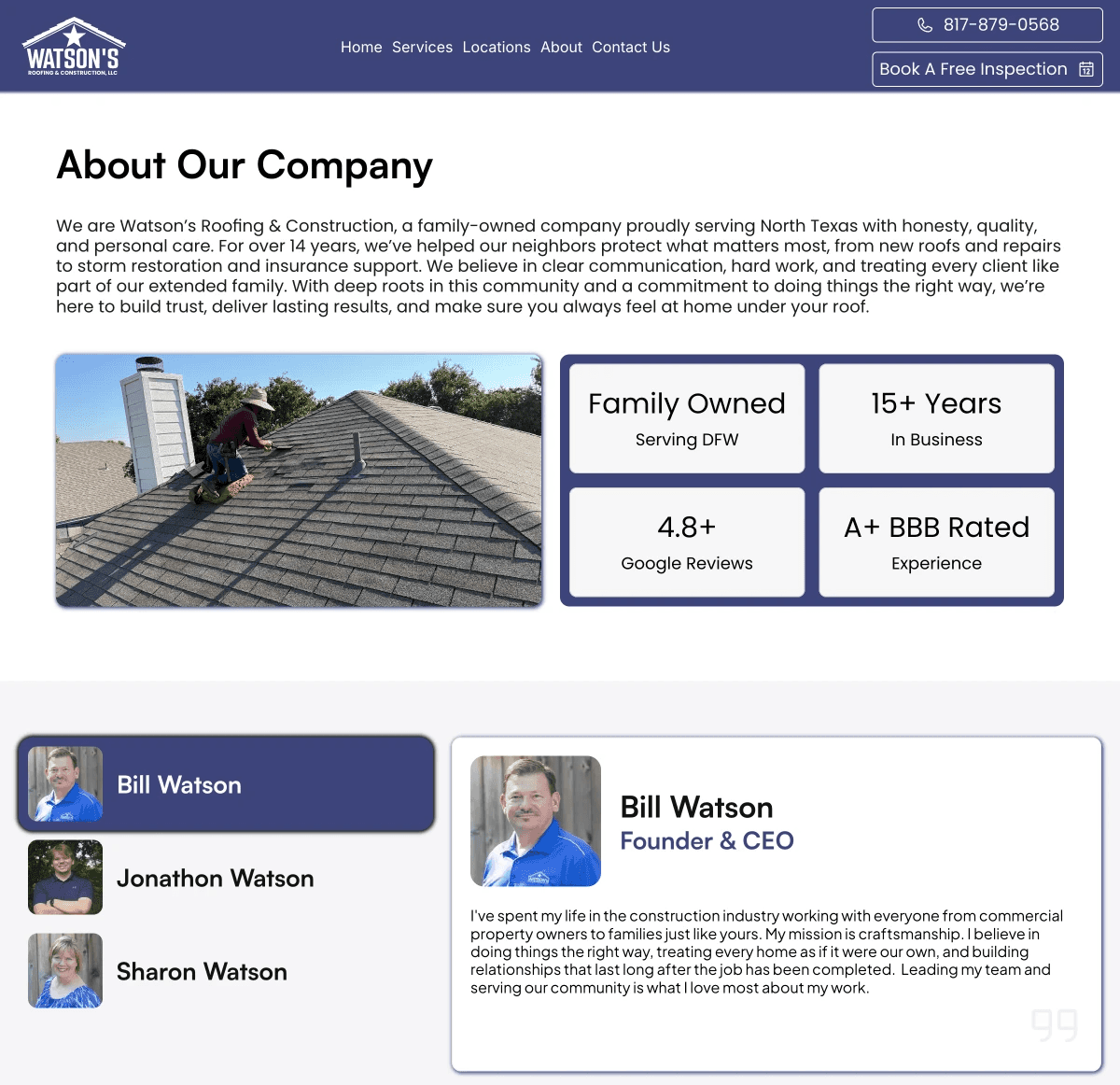 Roofing and remodeling can be stressful, but Watsons stands out by making the process simple and personal. Our copywriting focused on their story—generations of expertise, honest advice, and a hands-on approach that puts people first. We used relaxed, friendly language to highlight their values, their “prodigal son” warmth, and the relief clients feel when Watsons is on the job. Every word is designed to build trust and make the next step easy.